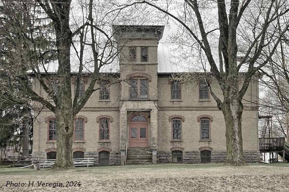 Travelers along County Highway BB in Waupaca County will have noticed the imposing two-story historic brick building at the intersection of BB and Bear Lake Rd. What was this? A school? A hospital? There’s not much evidence, just the year “1895” chiseled into the stone of the Italianate-style central tower. There's a large historic plaque to the east...but it's completely blank.