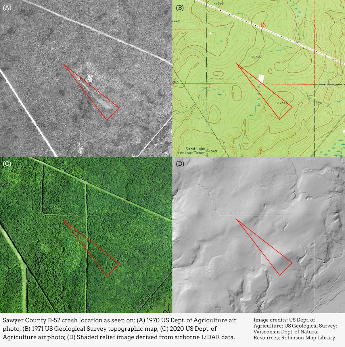 [9] Chris Barncard, UW–Madison map library pinpoints Sawyer County site of 1966 bomber crash, University of Wisconsin-Madison. https://news.wisc.edu/uw-madison-map-library-pinpoints-sawyer-county-site-of-1966-bomber-crash/