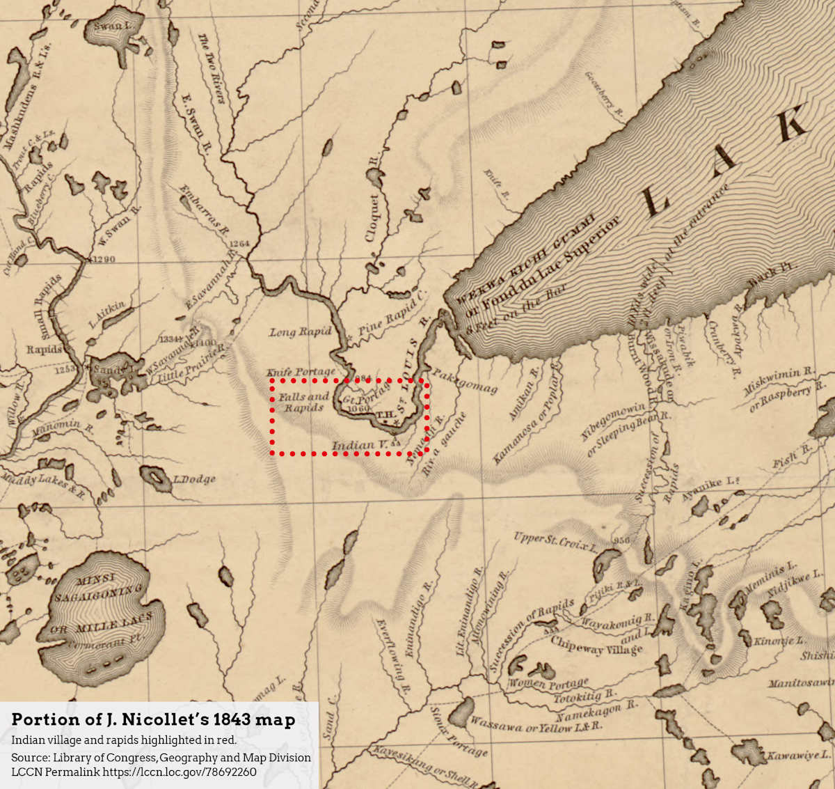 Let’s look at the St. Louis River portion first. Article II of the Wisconsin Constitution [1] states that the boundary runs up the main channel of the river “to the first rapids in the same, above the Indian village, according to Nicollet’s map.”
