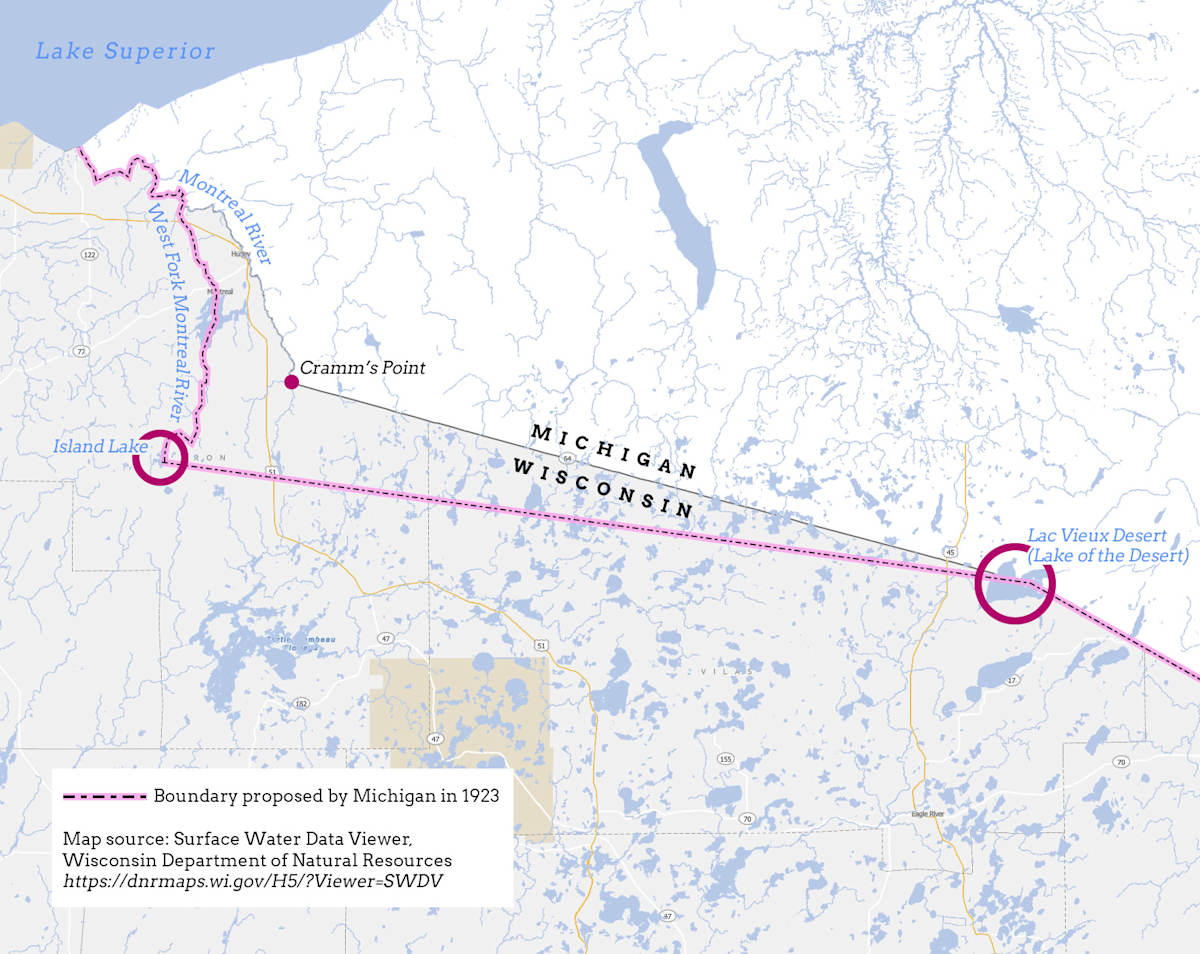 The location of Cram’s point in relation to the Wisconsin-Michigan boundary is shown on the map that accompanies this post.